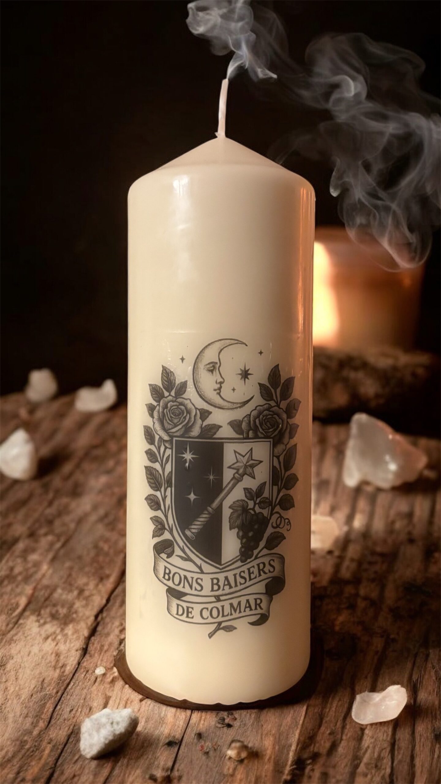 Bougie décorative, fabriquée aux Pays-Bas et décorée artisanalement dans mon atelier, à Colmar.