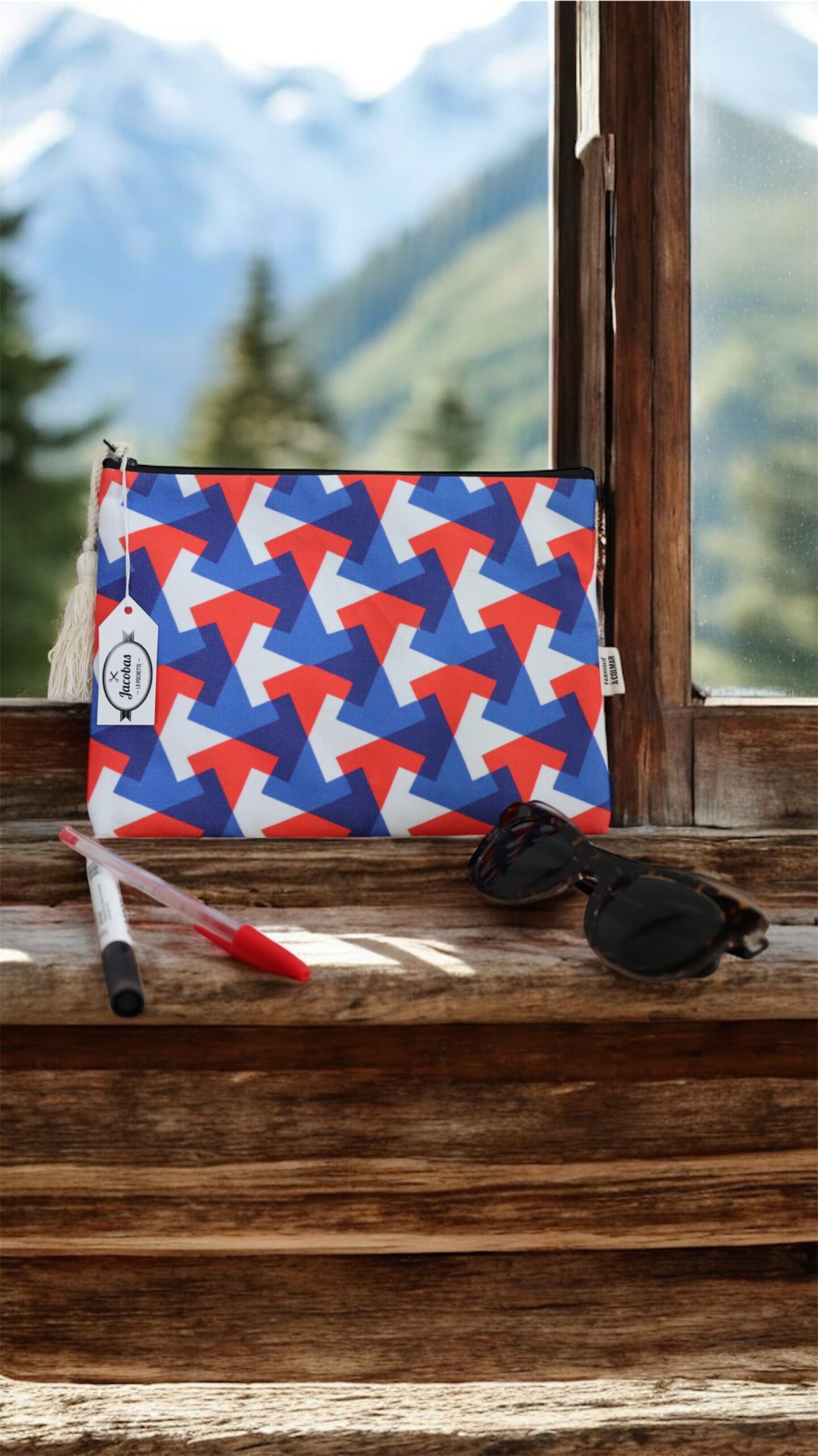 En savoir plus : Grande pochette graphique rouge blanche et bleue – Atelier Jacobas