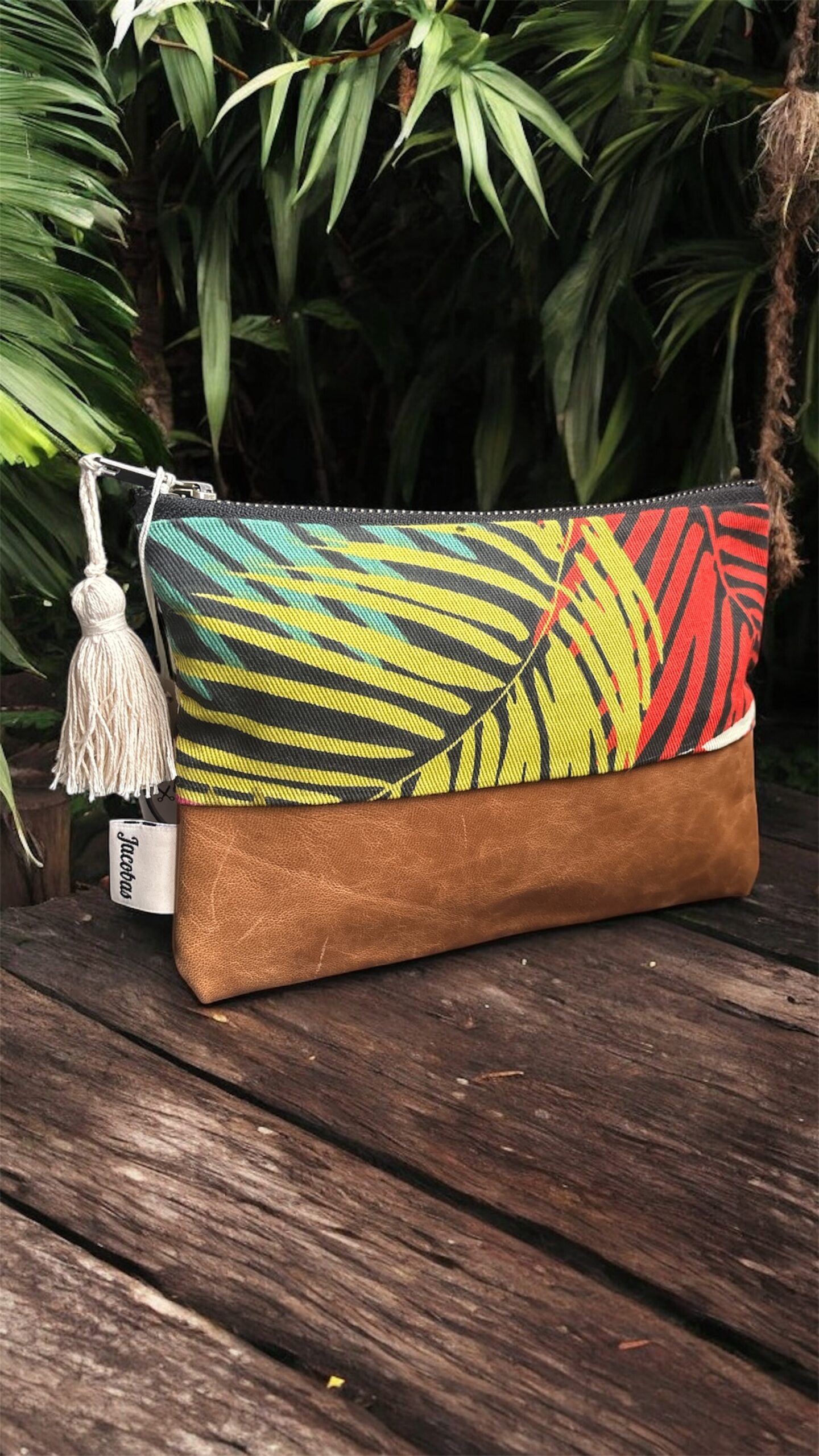 Pochette en cuir Rio, Les pochette en coton et cuir Jacobas sont fabriqués dans notre atelier.
